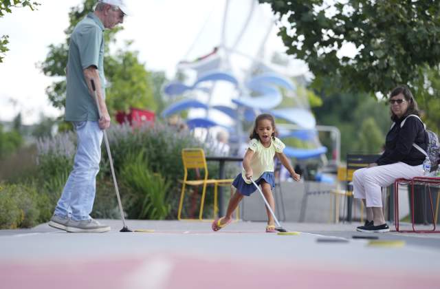 Heading toward Union Street on the trail, you’ll see Grand Junction Plaza. With an amphitheater, one-of-a-kind playground and tons of restaurants, this is a popular spot for the family! Along Restaurant Row, grab sushi at Chiba Indy, a classic Italian meal at Italian House on Park, or pizza at Greek’s Pizzeria. If you’re taking a bike ride or stroll in the morning, Rivet Coffee Bar and Roastery serves a wide selection of exceptional coffee as well as breakfast and lunch foods.