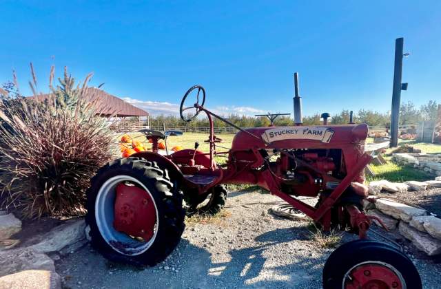 Around the farm, you’ll find several fun play structures that Stuckey has built over time, many of which are free and available year-round. There’s a giant wooden Jeep playground, large tractor tires where kids use every ounce of imagination, a combine slide, and even farm putt-putt golf.